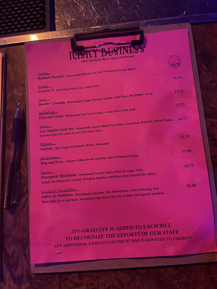 Introducing the menu at Risky Business, located in North Hollywood, is a unique blend of laid-back vibes and exceptional drinks. Drawing inspiration from New Orleans, the bar welcomes guests with a friendly atmosphere, where community and camaraderie thrive. Here, you can unwind with a fantastic selection of specialty cocktails, including a standout Long Island iced tea, and a variety of rare beers recommended by their knowledgeable bartenders.